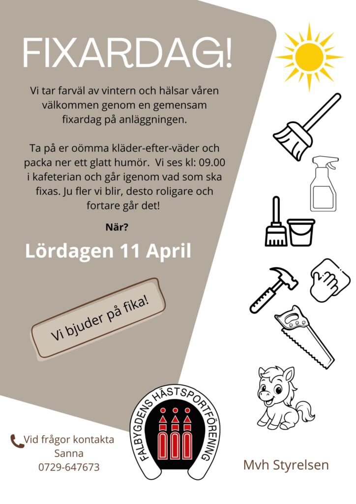 Lördag 11 april blir det FIXARDAG på Klockaregården.